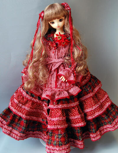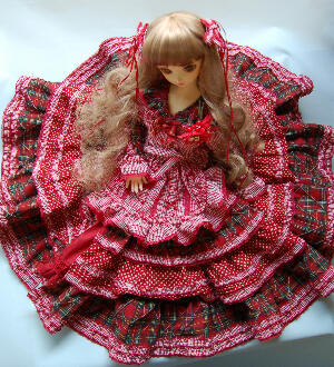 トップの赤系のミックスドレス、ちらっとモデルは夢愛香です。