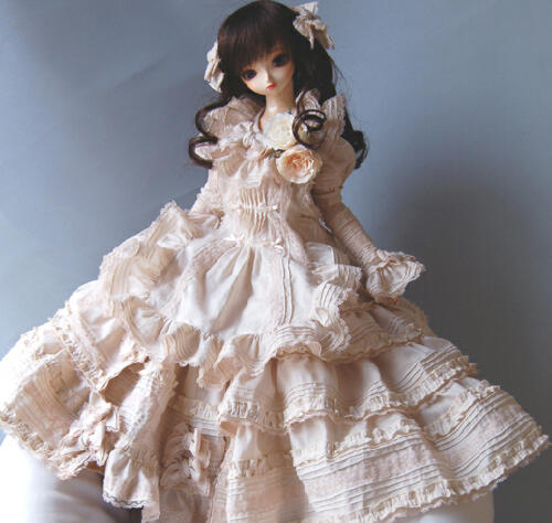 綿ローン、ハニーベージュの被せ4段ドレス。