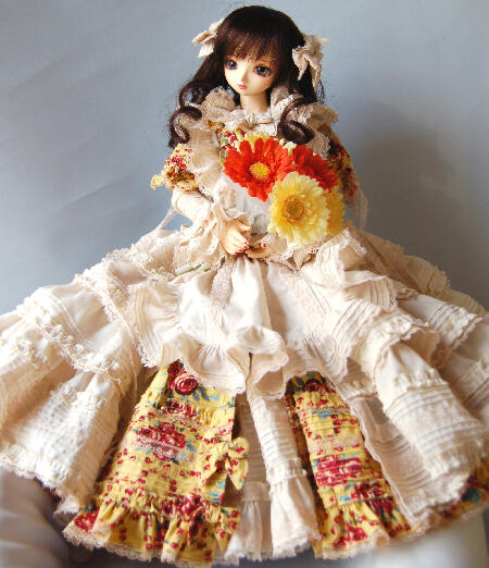 後ろ開きのローウエストワンピースに被せ4段のジャンスカを重ねました。