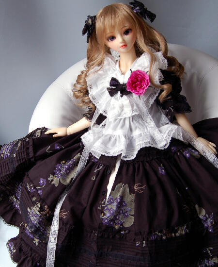 すみれ柄の品のあるドレス、ちらっとモデルは凛紅香です。