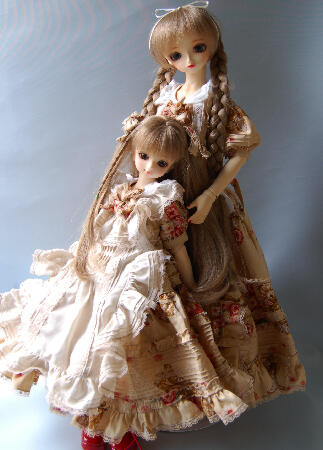 今日、SDサイズのピンクセットとちびサイズのベージュ無地セットがミシンかけまで終了予定。