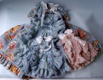 こちらは手縫いを残すのみになっているSDサイズブルーグレーくま柄と幼サイズ2セット。